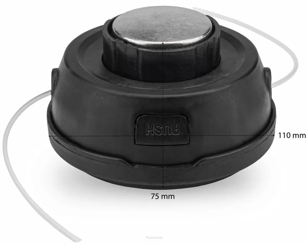 Profesjonalna głowica żyłkowa marki POWERMAT przeznaczona do cięcia trawy itp. pasuje do większości dostępnych na rynku kos spalinowych. Solidne zaczepy pokrywy nie pozwalają na odczepianie się jej podczas pracy.